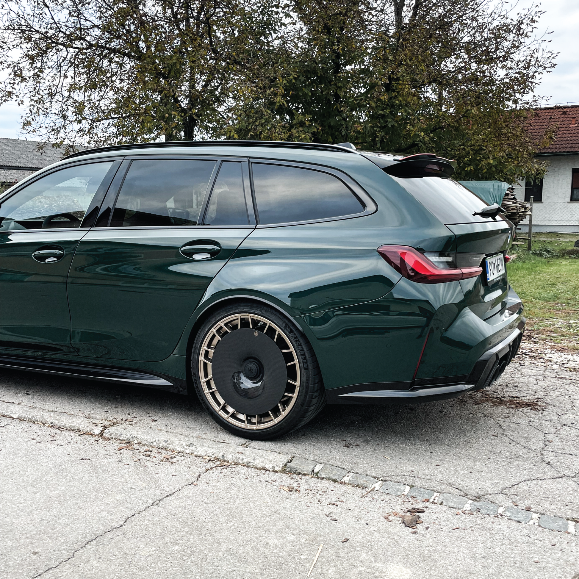 BMW M3 & M4(G80, G81, G82, G83)専用に設計され、CFD(数値流体解析)に基づく形状最適化により、ホイール周囲の乱流を整流し、ドラッグ低減と安定性向上に寄与します。