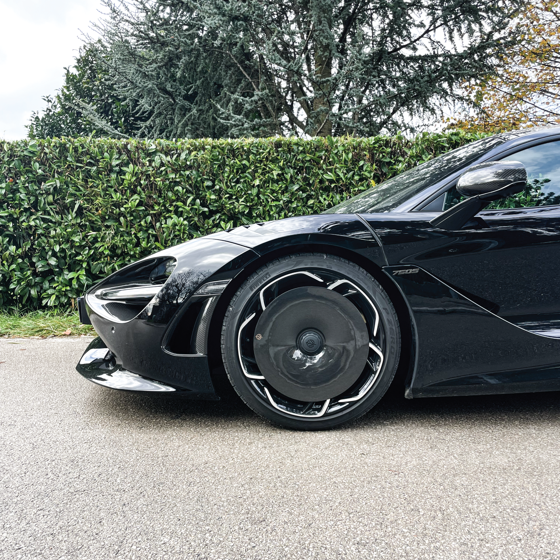 McLaren 750S専用に設計され、CFD(数値流体解析)に基づく形状最適化により、ホイール周囲の乱流を整流し、ドラッグ低減と安定性向上に寄与します。